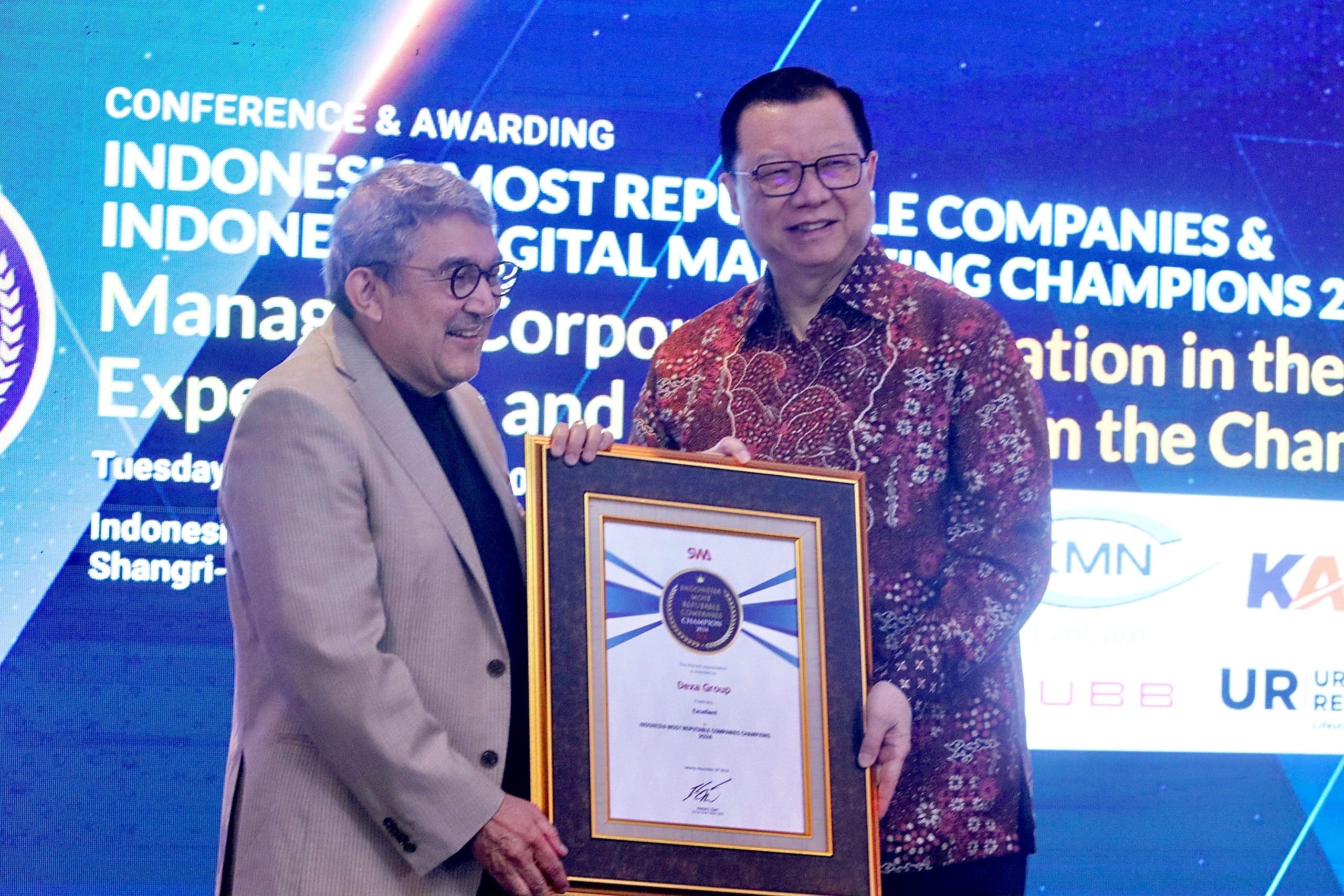 Dexa Group has been honored with the prestigious Indonesia Most Reputable Companies Champion Award 2024 with an Excellent distinction by SWA Magazine and Business Digest. The award recognizes companies that have successfully built a positive and trusted corporate image following a rigorous judging process conducted on October 1, 2024.