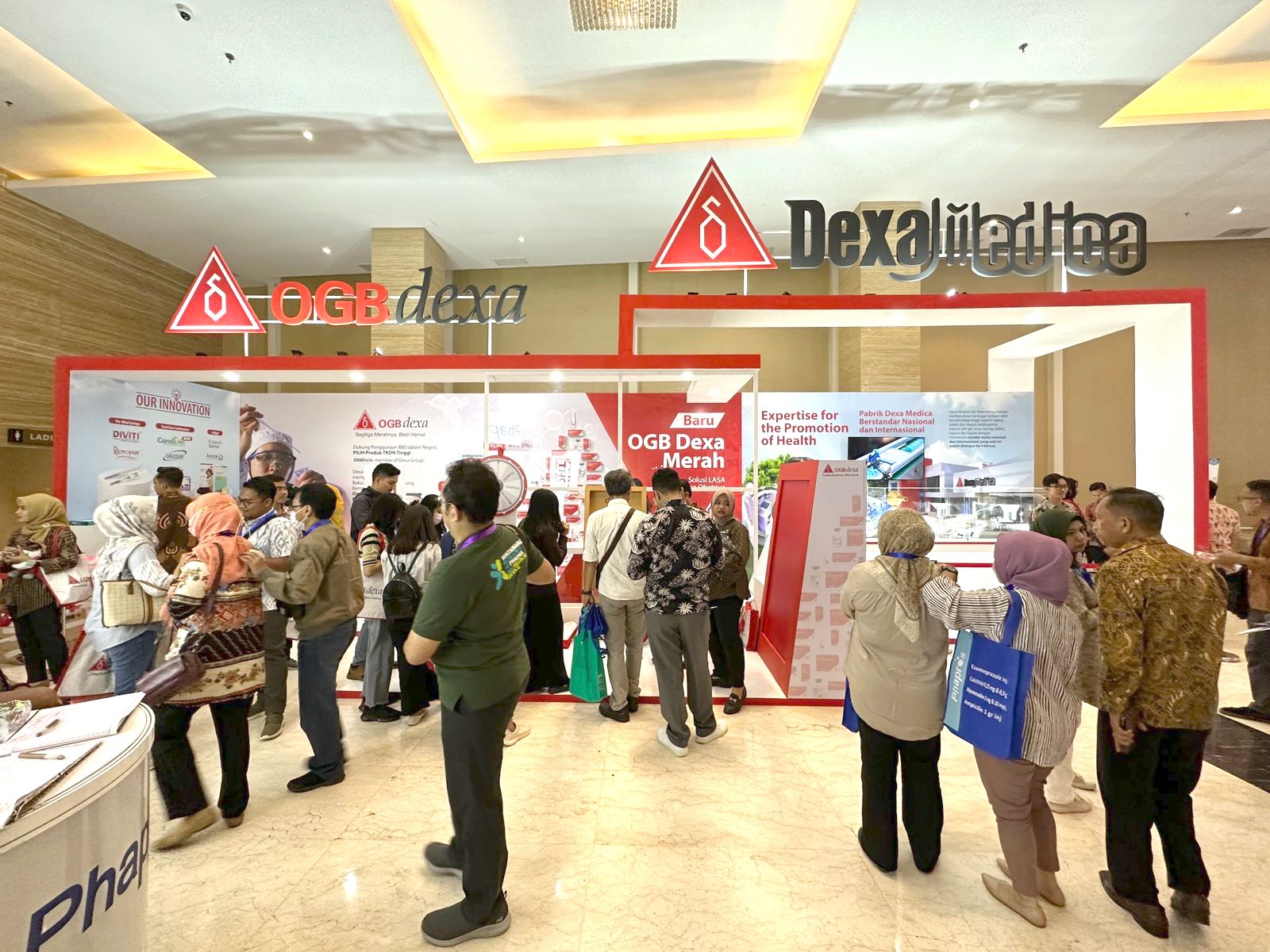 Dexa Medica established the OGBdexa booth, which included OGB goods with a high Domestic Component Level (TKDN). OGBdexa goods are Dexa Medica’s efforts to provide Indonesians with access to medicines with guaranteed quality, efficacy, and quality that are also affordable.