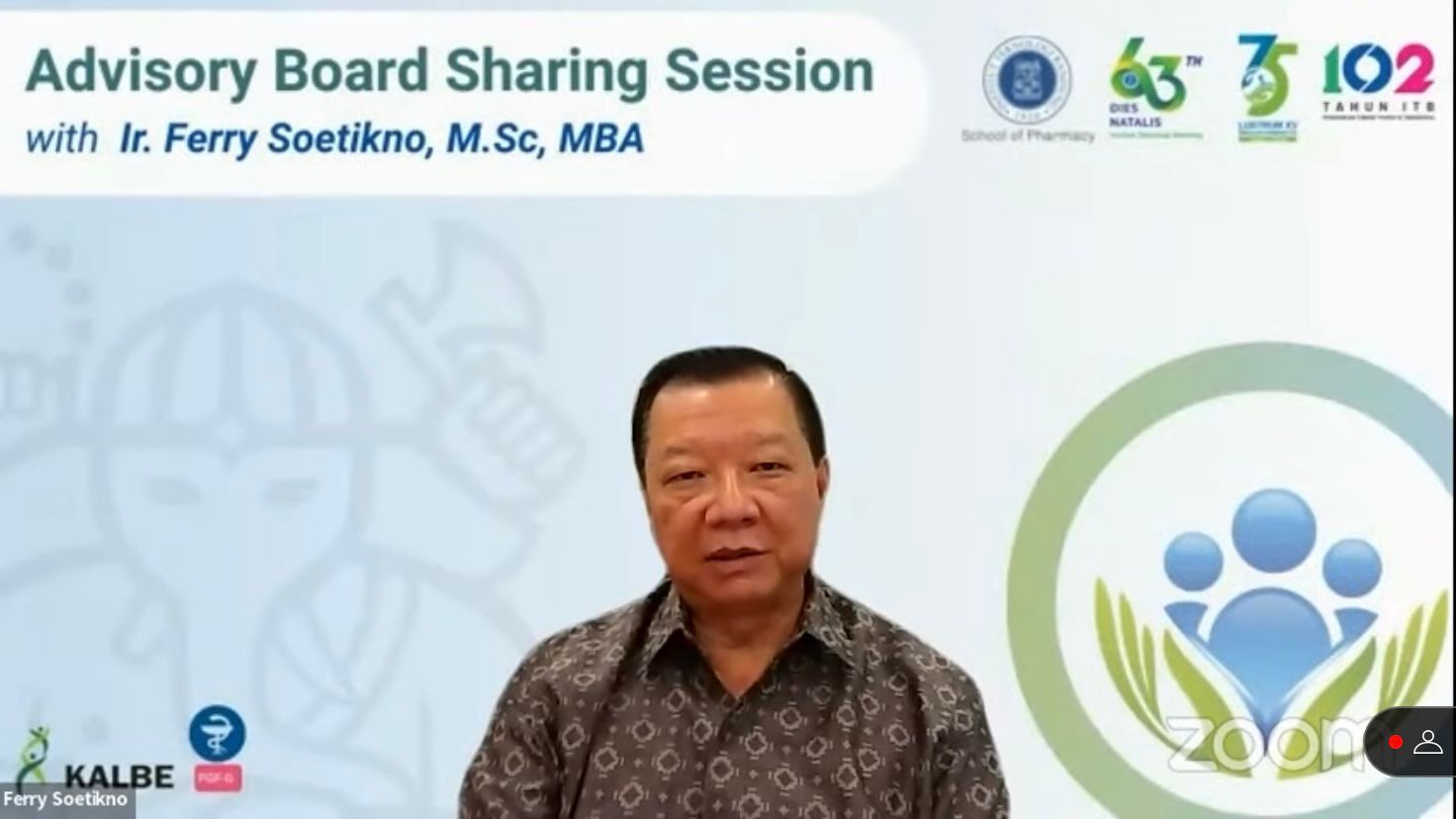Demikian hal yang mengemuka dalam acara Advisory Board Sharing Session #7 dengan pembicara Pimpinan Dexa Group Bapak Ferry Soetikno, M.Sc, MBA dan moderator Dekan Sekolah Farmasi ITB, Prof. Apt. I Ketut Adnyana, Ph.D. Sharing Session yang digelar oleh Sekolah Farmasi Institut Teknologi Bandung (ITB) dan diselenggarakan secara virtual ini, mengangkat topik “Dinamika Industri Farmasi Indonesia”, pada Sabtu 2 Juli 2022.