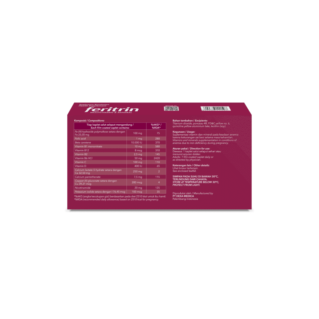 Suplementasi vitamin dan mineral pada keadaan anemia karena kekurangan zat besi selama masa kehamilan.