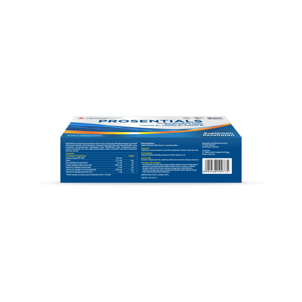 Suplemen untuk membantu memelihara kesehatan rambut, kulit, dan kuku.
