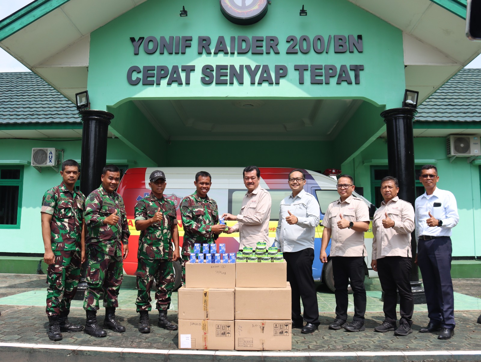 Kepala Korum Yonif Raider 200/BN Mayor Infanteri Mamiek menyampaikan ucapan terima kasih atas bantuan Dexa Group. Yonif Raider 200/BN juga mendukung kesehatan masyarakat melalui bakti sosial pengobatan gratis untuk masyarakat sekitar.