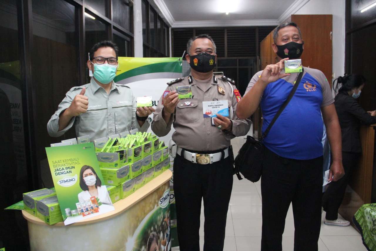 Stimuno as an immunomodulator made from green meniran (Phyllantus niruri) which has been certified phytopharmaceutical or has been clinically tested, aside from being given to around 140 vaccinators on duty during the implementation of the vaccine, it was also distributed to around 800 police team personnel who had received vaccinations at that time.
