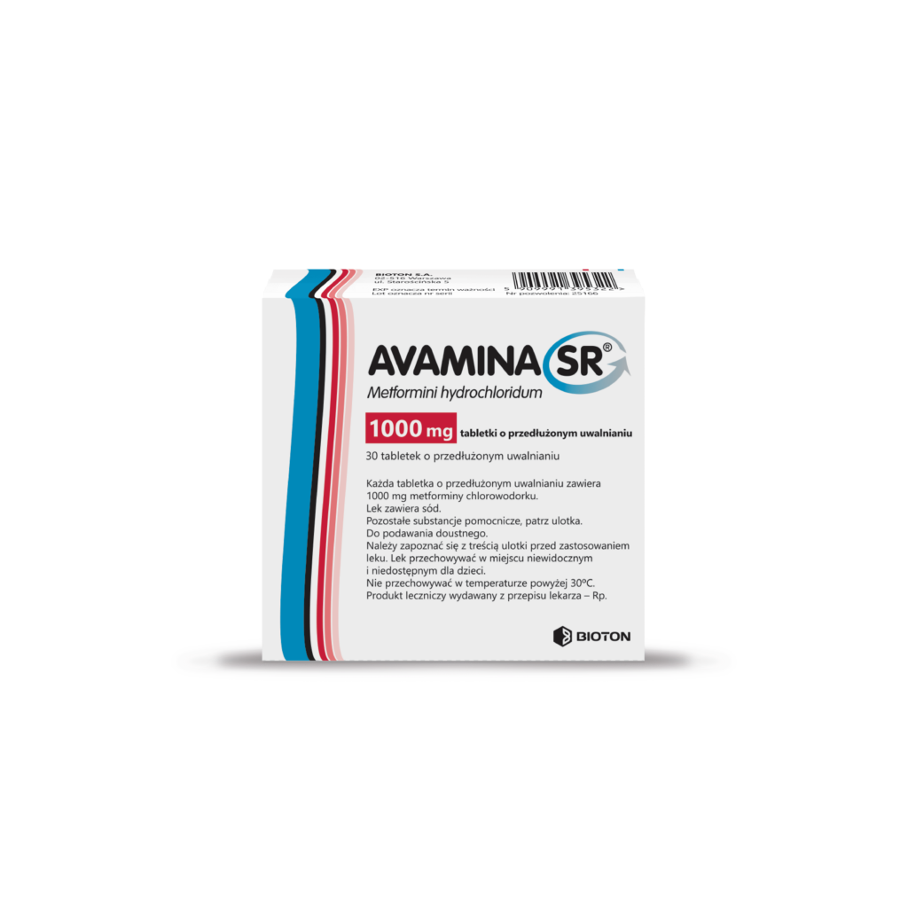Dorosli moga przyjmowac lek Avamina SR jako jedyny lek lub razem z innymi doustnymi lekami przeciwcukrzycowymi albo z insulina. Przyjmowanie leku Avamina SR jest zwiazane z utrzymaniem stalej masy ciala lub jej umiarkowanym zmniejszeniem. Lek Avamina SR zostal specjalnie opracowany w taki sposob, aby wolno uwalnial sie z tabletki do organizmu.