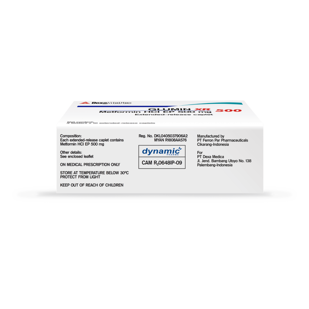 Glumin XR should generally be given once daily with the evening meal and should be started at a low dose, with gradual dose escalation. Subsequent dosage should be adjusted according to the patient’s therapeutic response, using the lowest possible effective dosage. Glumin XR must be swallowed whole and never crushed or chewed.