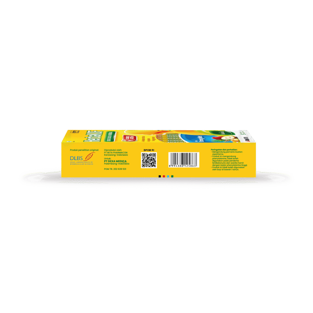 - Contains sweetener aspartam.