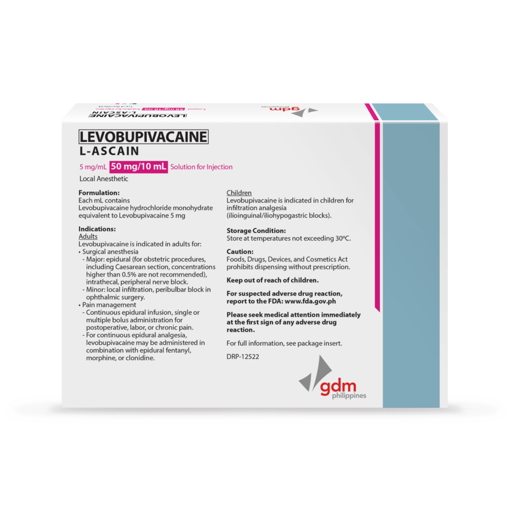 Levobupivacaine 5 mg/ml in 10 ml ampoule