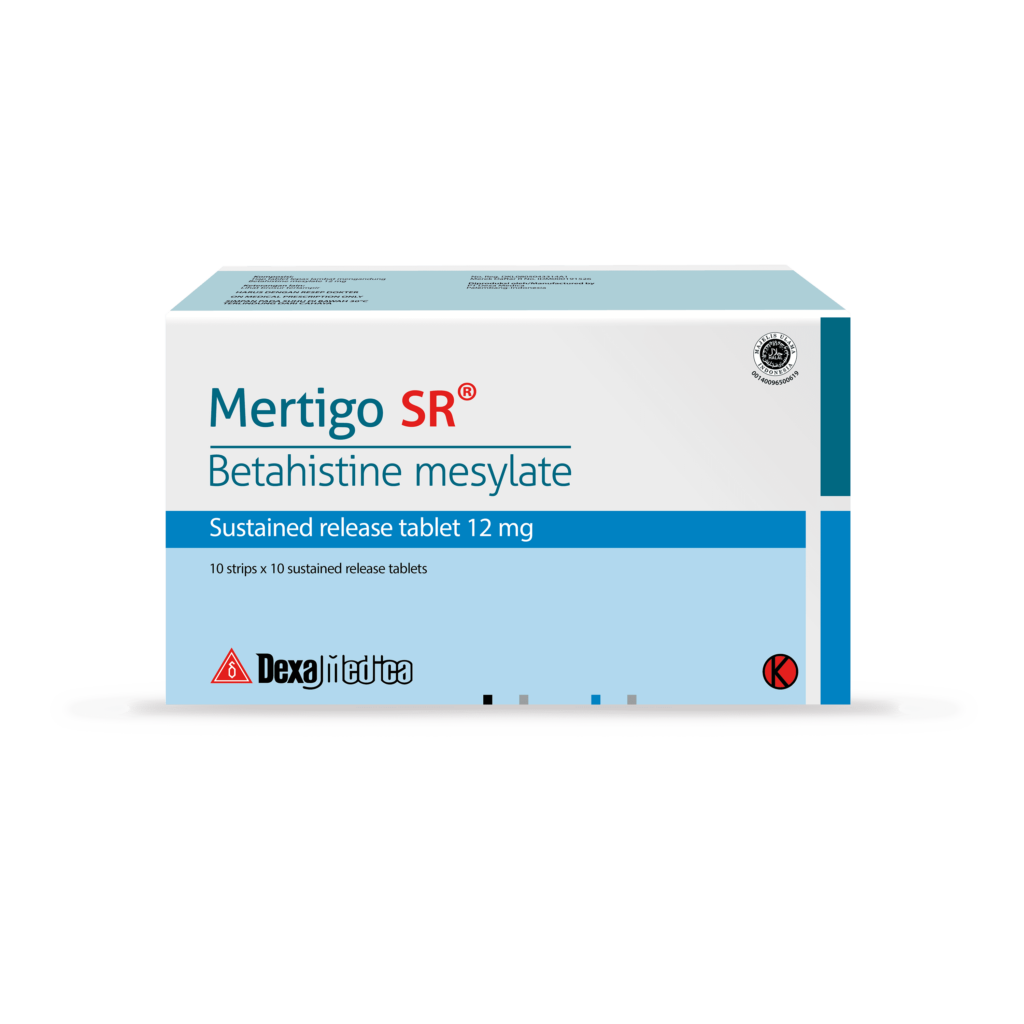 To relieve vertigo, dizziness which related to vestibular disorder in blood circulation disorder or Meniere’s syndrome, Meniere’s disease, and peripheral vertigo.