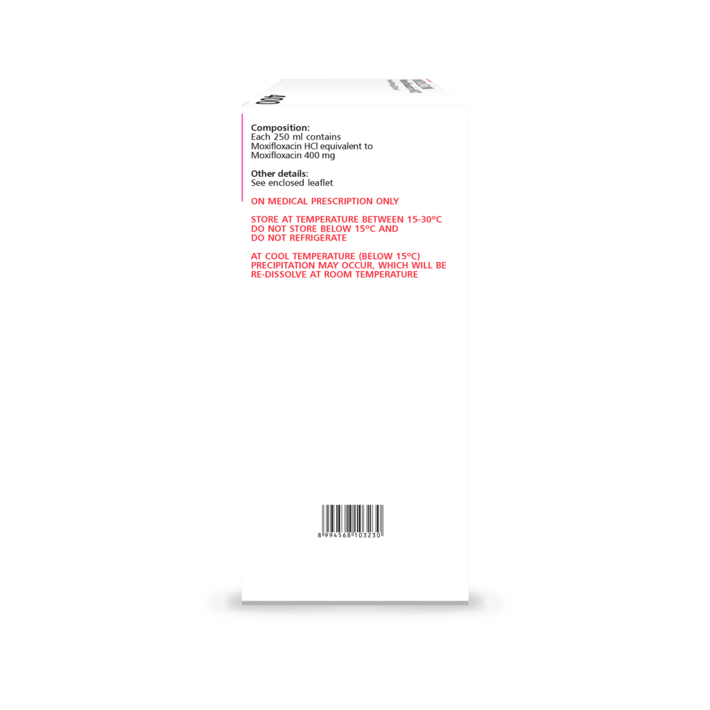 Intravenous moxifloxacin is only for patients that cannot take oral administration or have been clinically proven have to take parenteral administration. Consideration should be given of official guidance on the appropriate use of antibacterial agents. Moxifloxacin may only be used on prescription and under the constant supervision doctor.