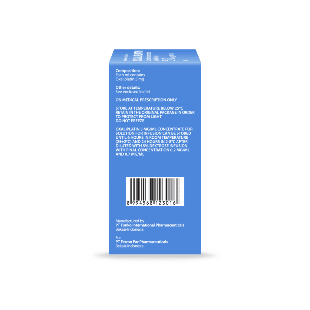 Oxaliplatin should always be administered before fluoropyrimidines. Oxaliplatin is administered as a 2-6 hours intravenous infusion in 250 to 500 ml of 5% dextrose infusion to give a concentration not less than 0.2 mg/ml.