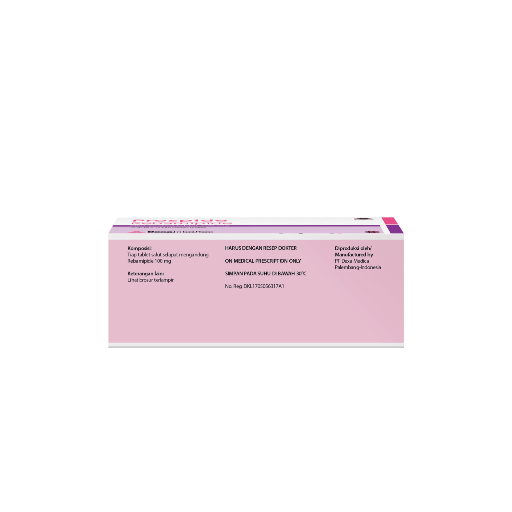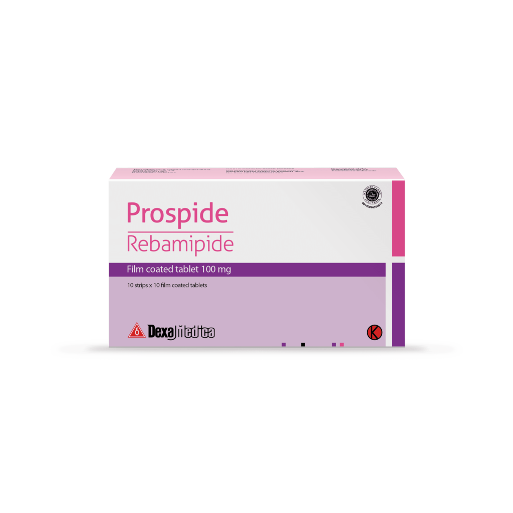 In combination with offensive factor inhibitors, the usual Adults dosage of rebamipide is 100 mg (1 tablet) taken by the oral route three times daily, in the morning, in the evening, and at bedtime.