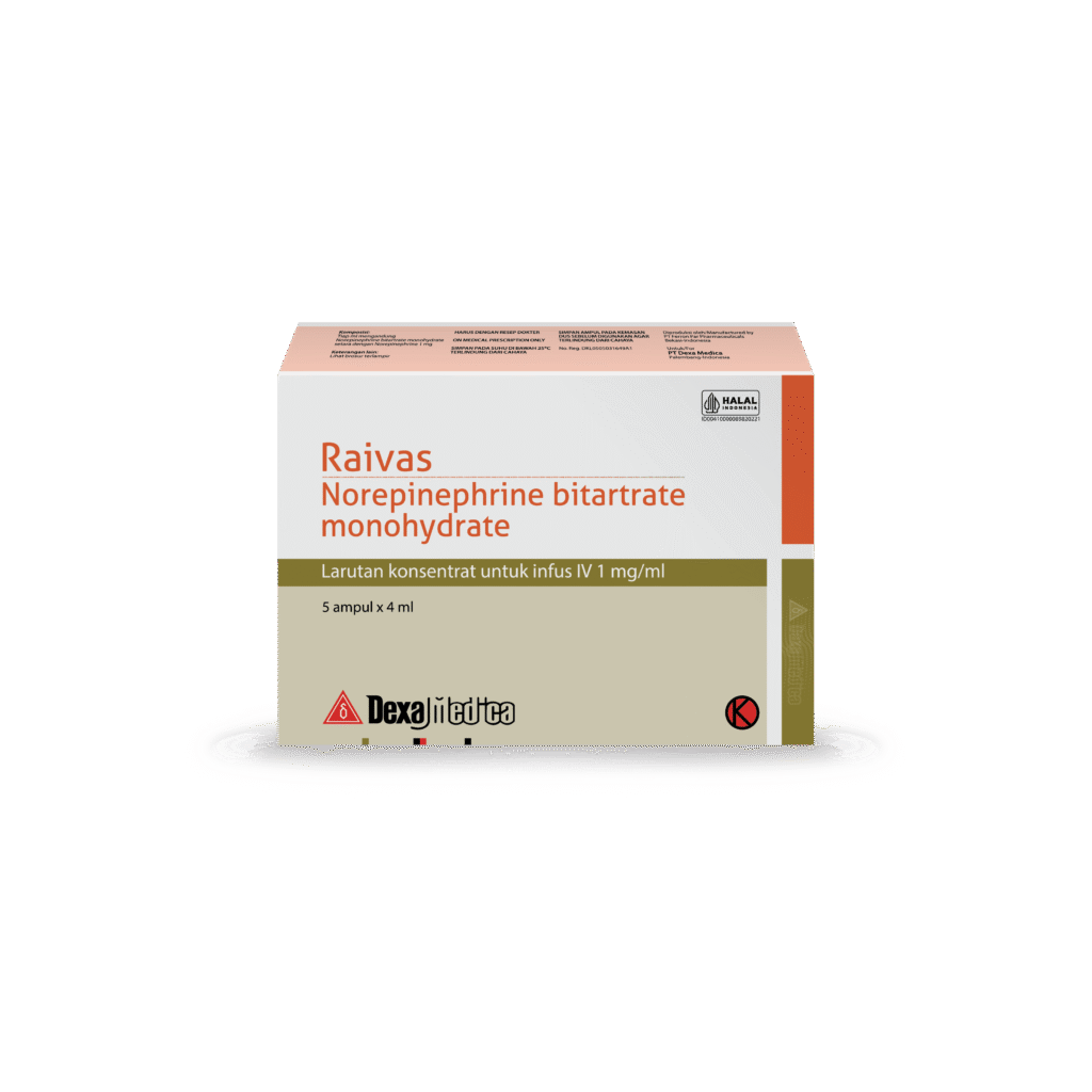 Raivas injection is a concentrated, potent injection which must be diluted in dextrose containing solutions prior to infusion. An infusion of norepinephrine should be given into a large vein.