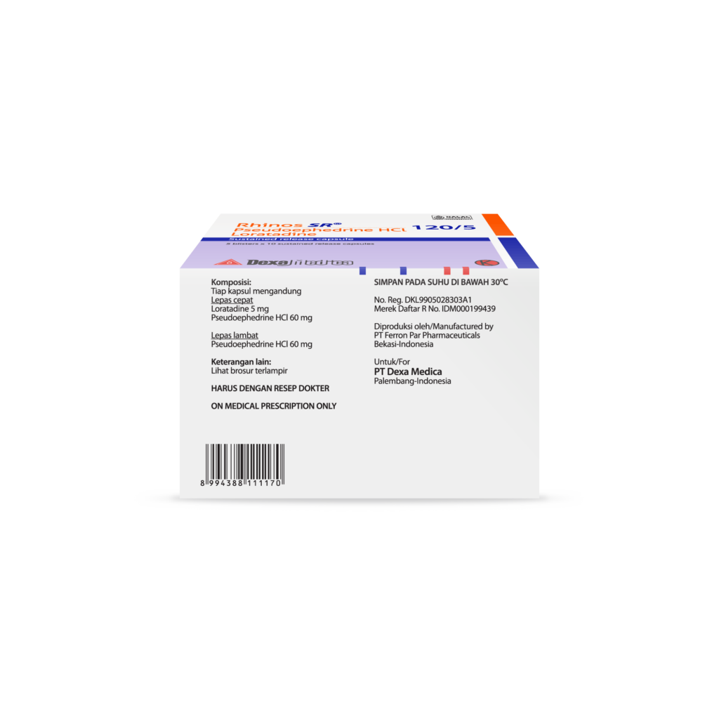 Relief of symptoms associated with allergic rhinitis, such as sneezing, nasal congestion, rhinorrhea and nasal pruritus. This drug is recommended when both of antihistaminic effect of loratadine and decongestant effect of pseudoephedrine are needed.