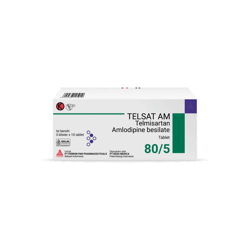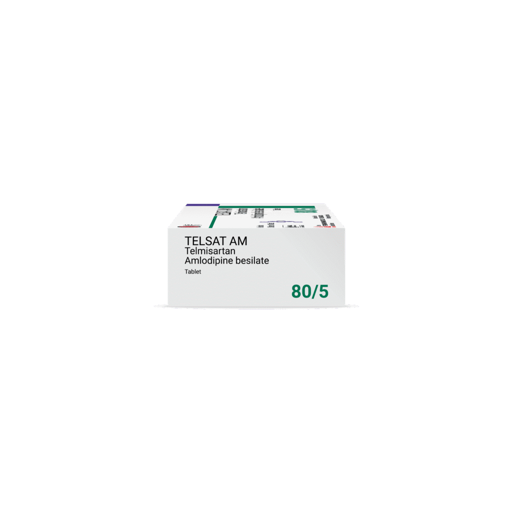TELSAT AM combines two antihypertensive compounds with complementary mechanisms to control blood pressure in patients with essential hypertension: an angiotensin II receptor antagonist, telmisartan, and a dihydropyridine calcium channel blocker, amlodipine. The combination of these subtances has an additive antihypertensive effect, reducing blood pressure to a greater degree than either component alone. TELSAT AM once daily produces effective and consistent reductions in blood pressure across the 24-hours therapeutic dose range.
